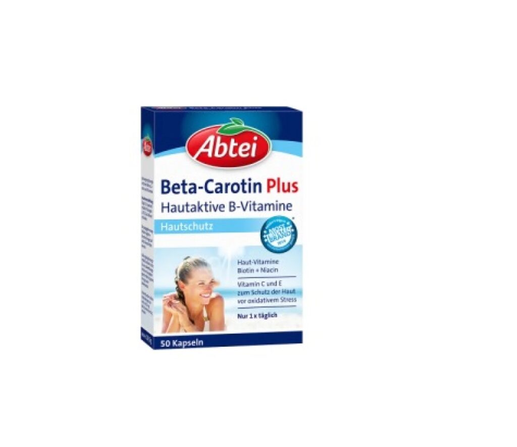 Комплекс мультивітамінів для захисту шкіри від впливу вільних радикалів Abtei Beta-Carotin Plus Hautaktive B-Vitamine 50шт