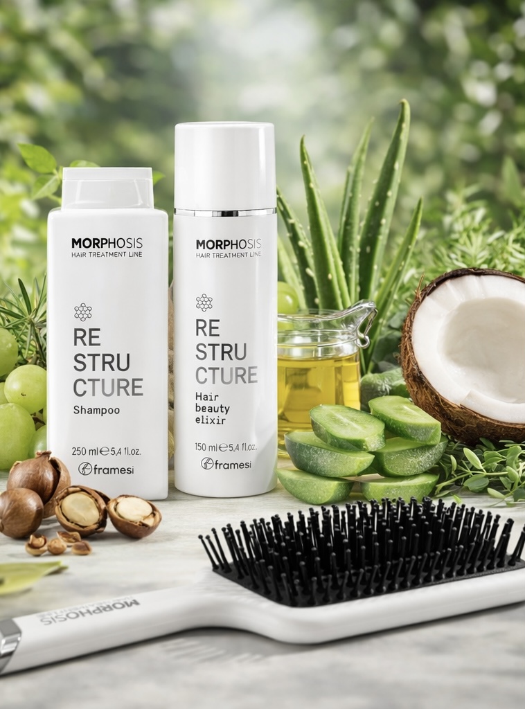 Набір для пошкодженого волосся з ефектом реконструкції Framesi Kit Restructure + Spazzola (Restructure Shampoo, Restructure Restructure Hair Beauty Elixir, Luxury Paddle Brush)