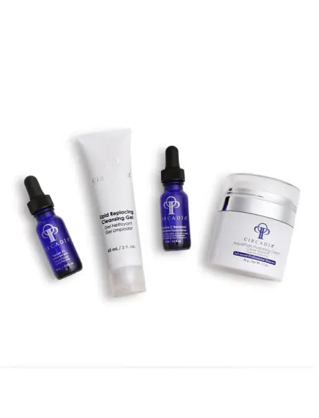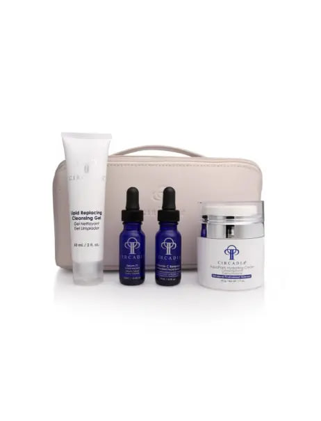 Набір для сяяння шкіри 2024 (Lipid Replacing Cleansing Gel, Vitamin C Reversal Serum, Serum 71, AquaPorin Cream, косметичка) Circadia Glow On The Go