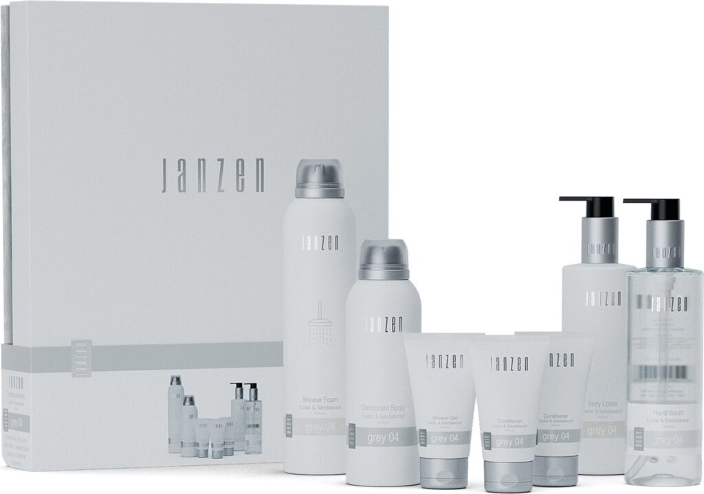 Подарунковий набір Впевнені Моменти з 7 засобами для догляду JANZEN Confident Moments Grey 04 Cedar Sandalwood