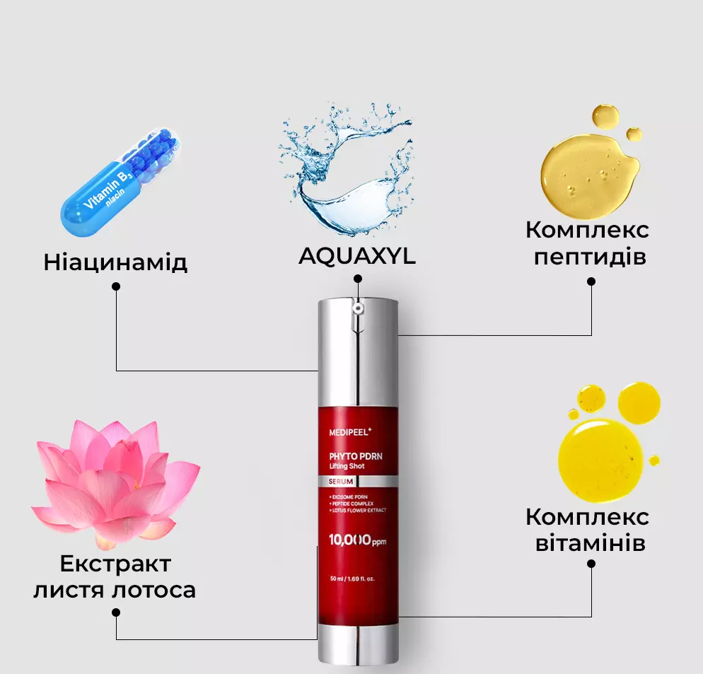 Висококонцентрована ліфтинг-сироватка з PDRN лотоса та екзосомами яблука Medi-Peel Phyto Exosome PDRN Lifting Shot Serum 50ml