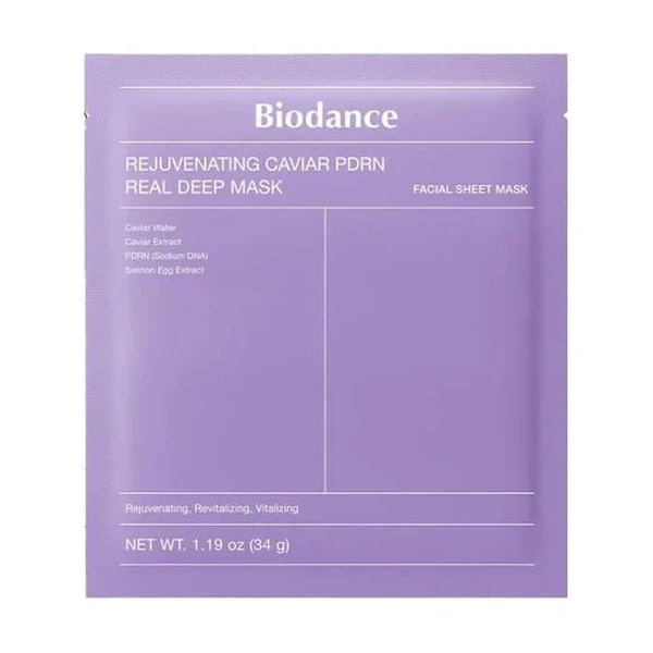 Маска гідрогелева антивікова з PDRN, ікрою, алоє вера, гліцерином, ніацинамідом, оліями жожоби та ши Biodance Rejuvenating Caviar PDRN Real Deep Mask 34g