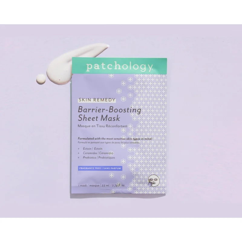 Заспокійлива захисна маска для обличчя з ектоїном, керамідами, пробіотиками, рослинним комплексом Patchology Skin Remedy Barrier-Boosting Sheet Mask 22ml