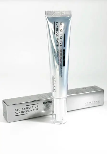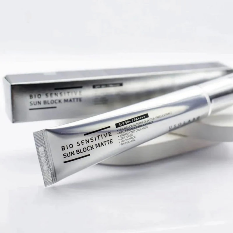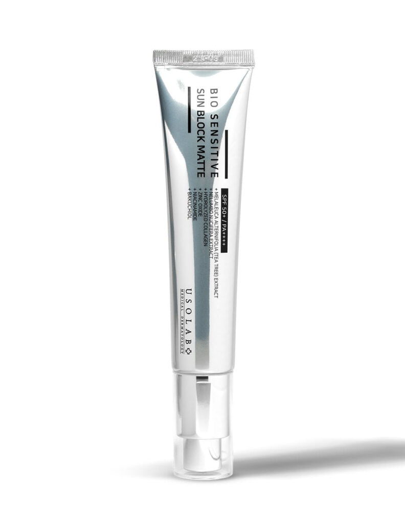 Омолоджувальний, заспокійливий, матуючий сонцезахисний крем з екстрактом чайного дерева, лотоса USOLAB Bio Sensitive Sun Block Matte SPF 50+/PA++++ 50ml