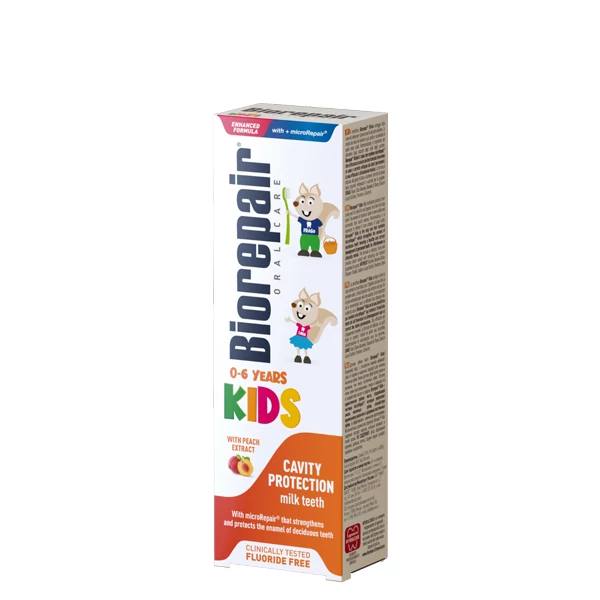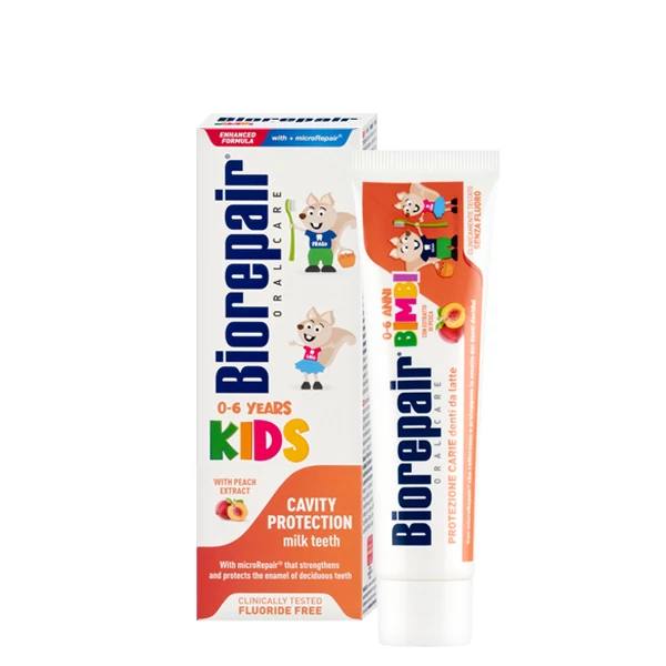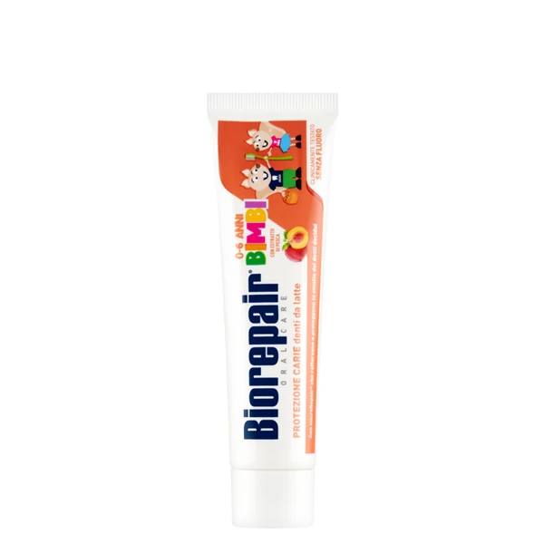 Зубна паста для дітей 0-6 років без фтору, з рідкою емаллю з екстрактом персика Biorepair Oral Care Kids Topo Gigio Cartoon Peach 50ml