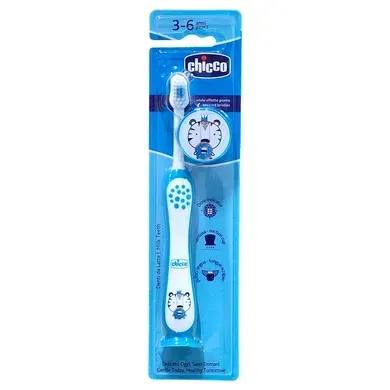 Зубна щітка для догляду за зубами дитини від 3 до 6 років на присосці зі скребком для очищення язика та ковпачком, синя Chicco Milk Teeth 3-6 anni years