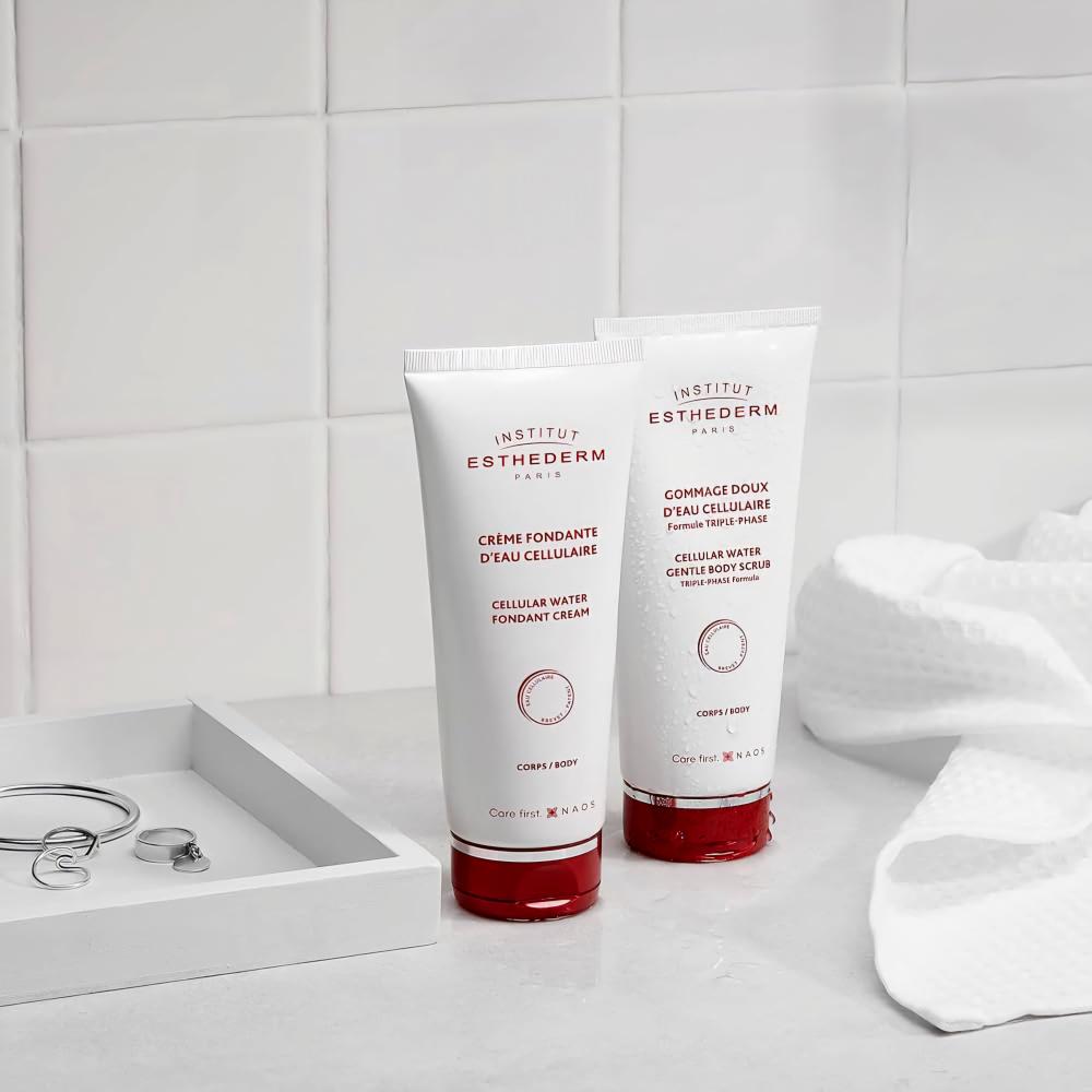 М’який скраб Клітинна вода містить CW (карнозин, мінеральні солі), ефір жожоба, лимонна кислота, екстракт ламінарії Institut Esthederm Cellular Water Gentle Body Scrub 200ml