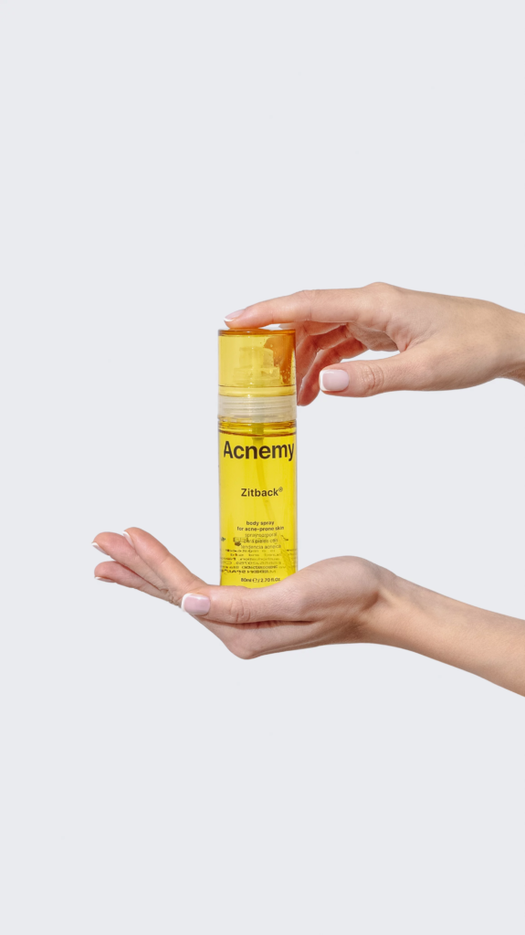 Спрей для проблемної шкіри тіла з акне з BHA і AHA кислотами та лимонною водою Acnemy Zitback body spray for acne-prone skin 80ml