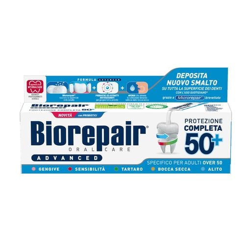 Професійна зубна паста Комплексний догляд Адвансед Biorepair Advanced Protezione Completa 50+ з наногідроксиапатитом, вітамінами А, С, Е, пробіотиками 75ml