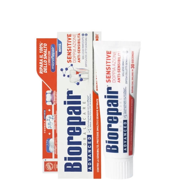Професійна зубна паста Позбавлення чутливості подвійна дія Biorepair Advanced Sensitive з рідкою емаллю та антибактеріальним комплексом, ксилитолом 75ml