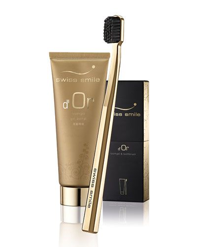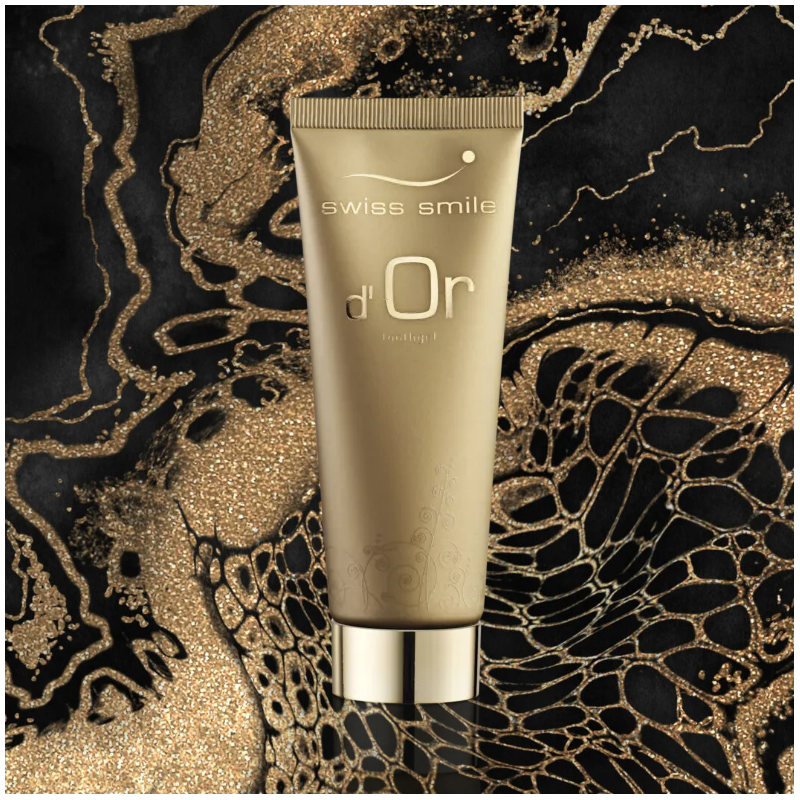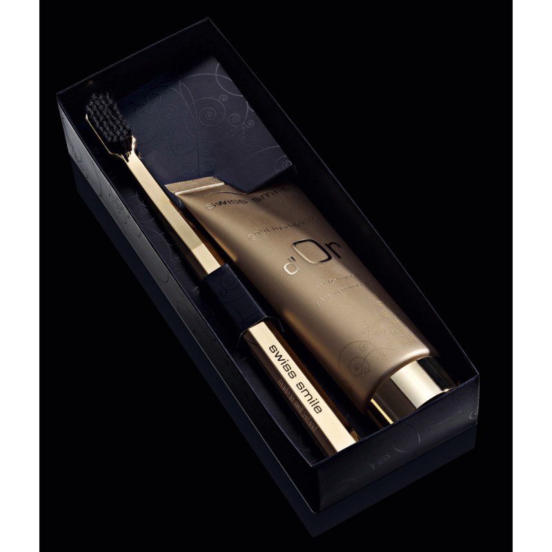 Набір із золотої зубної гель-пасти із частинками найчистішого 24-каратного золота, гіалуроновою кислотою та позолочена ультра м’яка зубна щітка Swiss Smile d’Or Gold