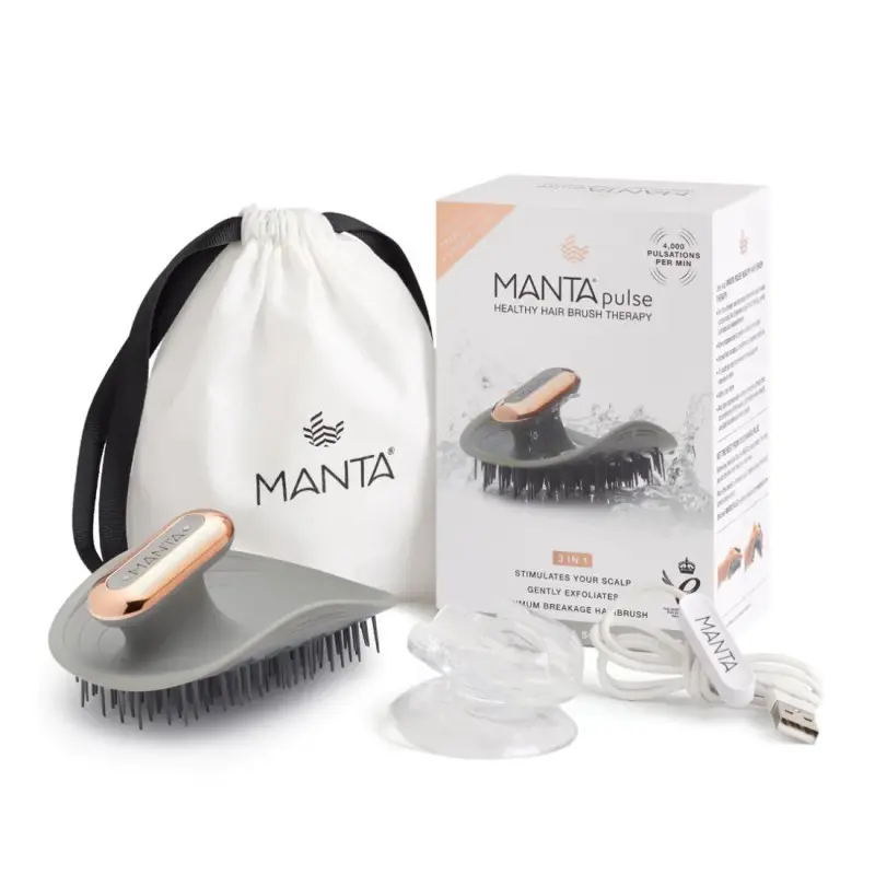 Щітка масажна для волосся сіра з тримачем MANTA Pulse Brush Grey
