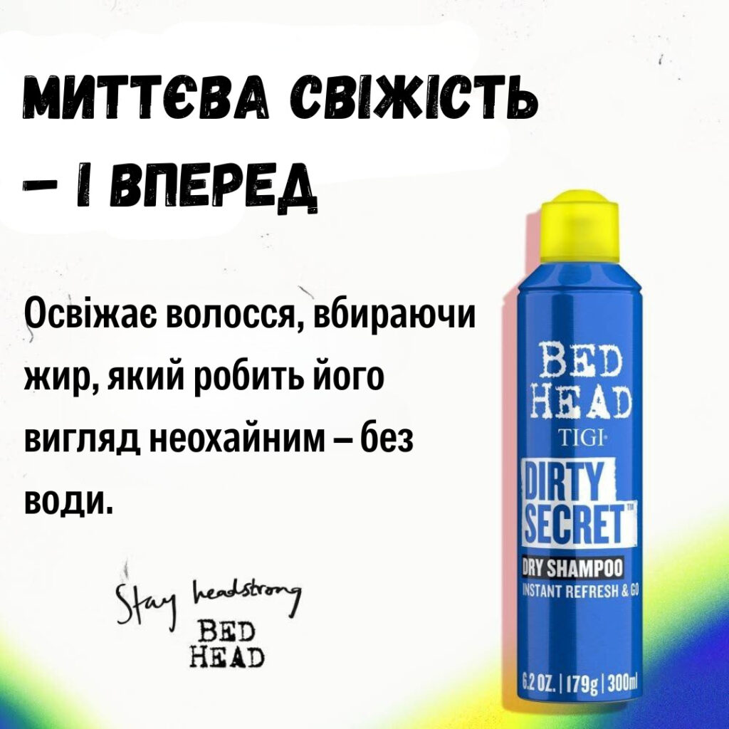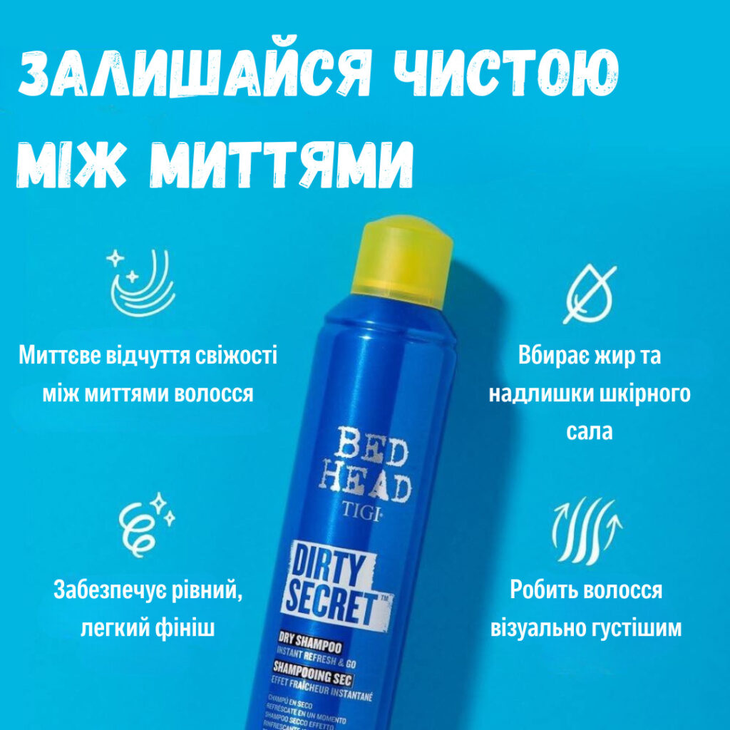 Очищаючий сухий шампунь містить кукурудзяним крохмалем зі свіжим фруктовим ароматом Tigi Bed Head Dirty Secret Dry Shampoo 300ml