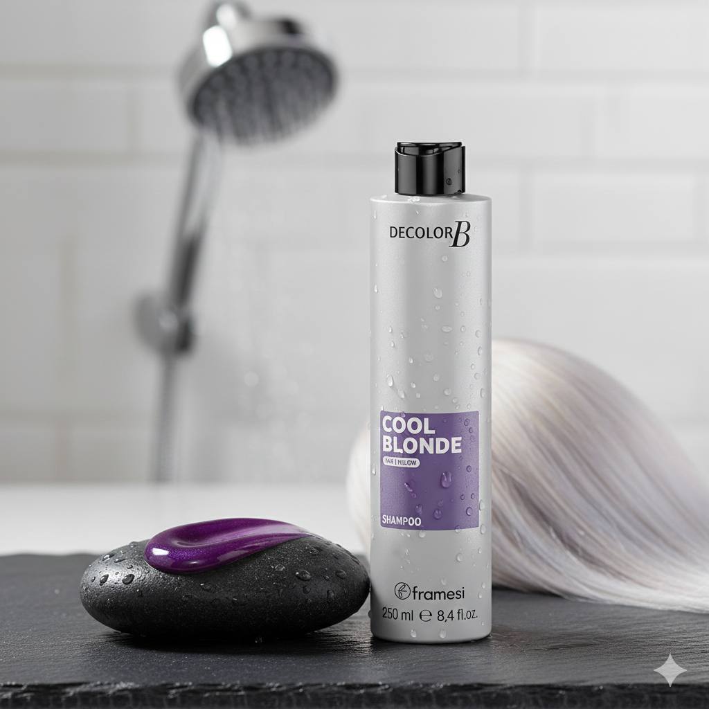 Шампунь з антижовтим ефектом для домашнього догляду всіх типів волосся з олією бурачника, гідролізованими пивними дріжджями Framesi Decolor B Cool Blonde Shampoo 250ml