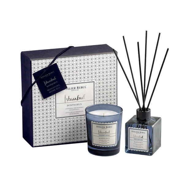 Подарунковий набір для дому з ароматом морської солі та турецької троянди (аромадифузор 50мл, ароматична свічка 65г) Atelier Rebul Istanbul Bosphorus